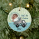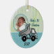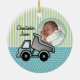 O ornamento de fotos de Natal de 1rua do bebê com fotos gêmeas. Caminhão de despejo bonito com faixas e bolinhas com texto personalizável.