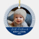Ornamento De Cerâmica Bebês Primeiro Natal - Bolinhas brancas azuis