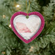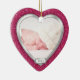Você pode personalizar a foto do bebê e o texto neste ornamento de árvore personalizável de Natal, cor-de-rosa e prata. O design apresenta um padrão de brilho simulado rosa quente (fuchsia, magenta) com uma estrutura cardíaca prateada. Personalize a foto do bebê, o ano e o nome no verso usando as opções de personalização. Ou, para fazer alterações mais abrangentes neste ornamento do Xmas de bebês 1ruas, use a opção personalizá-lo. Excelente para uma menina.