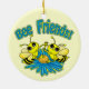 Bumbles bonitos em uma flor azul bonito com texto de BEE AMIGOS.