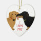 Cute Dachshund lover’s Christmas ornament. Black and tan longhaired Doxie and red shorthaired Dachshund. Ceramic holiday ornament of a wiener dog’s kiss. Personalize with your own text. An original cartoon weenie dogs art illustration by ©Jenn Inashvili. Makes a sweet gift and treasured ornament to display on the Christmas tree for years to come. Visit Jenn’s Doodle World for even more holiday gifts with this love dogs design and more dog breed art and home décor.