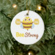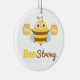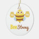 Enfeite bonito com um desenho engraçado de uma abelha de listras amarelas e marrons bonitinhas segurando dois potes de coleta de néctar. Tagline lê "Bee Strong", que é uma peça homofônica na palavra "Be" com "Bee". Amuse e lembre-se da mensagem positiva e significativa de ser forte como uma abelha. A cor de fundo pode ser alterada no modo de personalização.