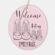 O ornamento apresenta uma ilustração original de um par de grandes calçados e calçados para bebês, com WELCOME em uma fonte bonito. Ideal para um chá de fraldas, batismo ou batizar. Apenas personalize com sua informação. Este design também está disponível em outros produtos. Não vê o que está procurando? Precisa de ajuda para a personalização? Entre em contato com Rebecca para ter algo projetado só para você.