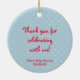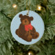 Um ornamento cerâmico redondo com uma imagem de um adorável ursinho de pelúcia recheado com um grande arco vermelho chamado Ben sobre um fundo de bolinhas brancas em azul. Back tem uma imagem de bolinhas brancas em texto azul e opcional. Veja o ornamento correspondente da escultura de fotos acrílicas. Veja toda a coleção de Ornamento de Crianças em TOUCHES ESPECIAIS | Seção Favoritos para festas.