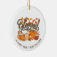 Ornamento Cerâmico de Ação de Graças Cristão na moda BESSED com tratamento de abóbora de lattes, torta de abóbora e folhas de outono. O texto curvo é PERSONALIZÁVEL para que você possa adicionar seu nome de família ou outro texto. Presente ideal para a decoração da sua casa ou como presentes de favores para amigos e família durante todo o ano e especialmente para amantes de latte de especiarias de abóbora durante a temporada de Ação de Graças.