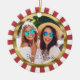 Ornamento De Cerâmica Besties 2 Fotografia redonda com faixas vermelhas