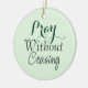 Este lindo ornamento apresenta um verso Bíblia que nos encoraja a nunca parar de rezar junto com um nome personalizável nas costas. Um presente adorável para aqueles que acreditam no poder da oração.