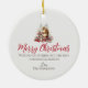 Enfeites de natal bonito com um doce pedaço de madeira numa cena de floresta de inverno com velas e bagas. Enfeites de natal de animais da floresta personalizado (texto no verso).