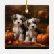 Ornamento De Cerâmica Biewer Terrier Puppy Autumn Delight Pumpkin