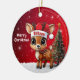 Blitzen! Celebrate the holiday season with this festive round ceramic red ornament featuring an endearing woodland forest animal cartoon graphic of a cute baby reindeer wearing a Santa hat, and Merry Christmas written in white. Perfect deer with antlers for decorating your tree or as a thoughtful gift, this whimsical doe decor makes a cherished keepsake for years to come. Customize by changing the text, the font, the font color, or remove the text. You can even transfer this design onto other products. Enjoy this design your way! Check out ForestBabies Xmas Deer Collection for matching decorations. 🎄🦌