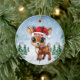 Blitzen! Celebrate the holiday season with this festive round ceramic red ornament featuring an endearing woodland forest animal cartoon graphic of a cute baby reindeer wearing a Santa hat, and Merry Christmas written in white. Perfect deer with antlers for decorating your tree or as a thoughtful gift, this whimsical doe decor makes a cherished keepsake for years to come. Customize by changing the text, the font, the font color, or remove the text. You can even transfer this design onto other products. Enjoy this design your way! 🎄🦌
