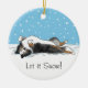 Blue Merle Shetland Sheepdog cachorro rolando na neve com flocos de neve descendo. Este Enfeites de natal de Sheltie faz um doce presente e um tesouro para mostrar na árvore de Natal por anos. Personalize com seu próprio texto. Visite o Doodle World de Jenn para obter ainda mais presentes de Natal com este lindo design de cães de inverno e mais arte de animais e decoração doméstica.