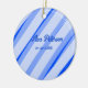 Ornamento De Cerâmica Blue pastel add name date boho retro lines pattern