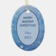 Aqui está um bonito Enfeites de natal temático de gato siamês que faz uma bela adição a uma casa que ama um siamês! A frente do ornamento apresenta uma bonito imagem aquosa de um gato Siamês de olhos azuis sentado em frente a um oval azul claro que é emoldurado com uma borda azul e branca de floco de neve. A parte de trás do ornamento tem a mesma borda do floco de neve e o mesmo oval azul, com seu texto personalizado em azul correspondente. Faça-o dizer o que quiser!