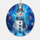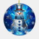 Ornamento De Cerâmica Blue Snowman Snowflakes Holiday Ornament