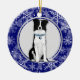 Ornamento De Cerâmica Blue White Snowflake Border Collie Christmas