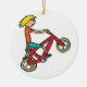 Um motociclista BMX fazendo uma caminhada na bicicleta da rua. Para fãs de BMX andando, ciclismo de rua e motocross.