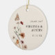 Boho Floral Cerâmica de Casamento. Este na moda e elegante design apresenta lindas flores silvestres de cor d'água pintadas manualmente, organizadas como um buquê adorável.