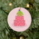 Ornamento De Cerâmica Bolo do Designer de Bolinhas Rosa