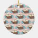 Bolo de baunilha de fosco de chocolate, fatia de bolo e jarro de leite com toalha de mesa úmida neste ornamento de Natal para padeiros, cozinheiros ou pasteleiros e amantes de doces.