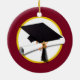 Ornamento De Cerâmica Boné de formatura e Diploma - Fundo Vermelho Escur
