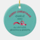 Uma ilustre imagem cartoon de uma pequena rena está na frente deste Enfeites de natal desenhado para um avô ou pai dar a uma criança como um guardião. A rena está vestida com um chapéu vermelho de Papai Noel e um suéter vermelho com um emblema de árvore de Natal. Ele veste um cachecol verde de inverno. A imagem é colocada sobre um fundo azul teal com um confete floco de neve. A parte de trás do ornamento também é azul, com seu texto personalizado em cinco campos de texto fáceis de alterar. Faça-o dizer o que quiser! Apropriado para uma criança, ou para um menino ou para uma menina.