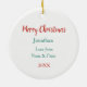 A frente deste adorável ornamento Holiday tem um bonitinho bonitinho, todo vestido com seu chapéu, cachecol de inverno, jaqueta e luvas. Com um grande sorriso no rosto, ele está olhando para um pequeno pássaro cardeal vermelho que está empoleirado em uma folha azul e uma coroa vermelha de morango. O verso do ornamento mantém o texto personalizado em cinco campos fáceis de alterar. Certifique-se de ver os ornamentos correspondentes na nossa loja.