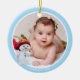 Ornamento De Cerâmica Bonito boneco de neve e foto personalizada em azul