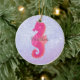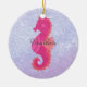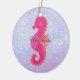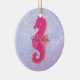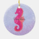 Bonito cavalo de mar rosa sobre fundo abstrato roxo.