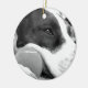 Ornamento De Cerâmica bonito e triste cão pitbull preto branco com bola