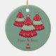 Que podia ser tão especial quanto seu primeiro Natal como um casal? Um design adorável e festivo com uma sensação para baixo home do Natal a ela. As árvores têm-lhes um sentimento quase acolchoado com máscaras agradáveis dos vermelhos e do azul esverdeado! Adicione seus nomes à parte traseira e ao ano em curso à parte dianteira para um ornamento verdadeiramente pessoal! Uma maneira romântica e original de amar seu primeiro Natal como um!