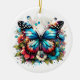 Ornamento De Cerâmica Borboleta Azul e Flores Personalizadas no Natal