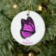 Ornamento De Cerâmica Borboleta bonito rosada, flitting roxa, personaliz