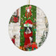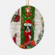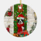 Borda Collie Dog sentada fora de casa decorada com coroa de Natal, árvore de Natal é uma ideia perfeita de presente de Natal para amantes de cachorros.