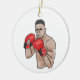 Um boxer encara o visualizador em uma pose clássica de boxe.