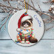 Na frente deste ornamento Feriado está a imagem de um gato Birman vestindo um chapéu de Papai Noel vermelho e branco, e que se embrulhou em uma corda de luzes de Natal. O nome do seu filho está em azul à direita da imagem. O texto no verso diz "Caros PAPAIS NOEIS, Definam BONITO". Há campos de texto adicionais em vermelho e azul para você personalizar sua saudação e assinatura. Bonita, especialmente para uma criança que é "detida" por um gato malicioso. É fácil personalizar isto para ser da mãe e Pai, ou da vovó e vovô, também.