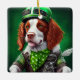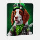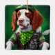 Um amigo peludo atrás das guiadas de uma bicicleta verde brilhante, vestindo uma roupa verde para o Dia de São Patrick que faz as cabeças virarem. O cachorro está vestido num conjunto festivo, completo com uma gravata verde de arco e um chapéu de topo correspondente que se senta suavemente sobre a cabeça. A roupa apresenta designs intrincadas de shamrocks e duendes, fazer claro que este cão está pronto para celebrar o Dia de São Patrício no estilo.
