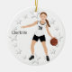 Celebre o mais recente e melhor membro da equipe de basquete com este ornamento de manutenção. Personalize para ajustado das informações do seu atleta. O nome, a equipe e os detalhes do jogador são incluídos como um modelo ou, se não necessário, apague o texto. As cores de fundo e texto podem ser alteradas se desejado. Os pedidos de cores específicas, estilos uniformes, tons de pele ou cor de cabelo são bem-vindos. Entre em contato com o designer - Night Owl's Menagerie, original: 2018.