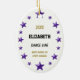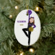 Um adorável ornamento de manutenção para o pom, dança competitiva ou membro da equipe espirituosa. Uma adorável dançarina de morena em roxo, ouro e preto com pompas e uma estrela emoldurada, dois ornamentos laterais que tem muito espaço para personalizar para um presente especial de um tipo para o atleta campeão. Pedidos de cores específicas, tons de pele ou cor de cabelo acolhidos. Arte original de Night Owl's Menagerie, 2021.