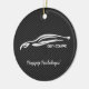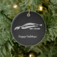 Brushstroke branco do cupé da génese de Hyundai com o ornamento personalizado do Xmas dos cumprimentos. Fundo da fibra do carbono do falso.