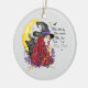 Ornamento De Cerâmica Bruxa com Gato Negro e Lua Crescente