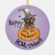 Hora de diversão de Halloween! Vá Trick ou Tratando com esta linda bruxa de chocolate Lab, vestindo um chapéu de bruxa, num sorridente Jack-o-Lanterna. presente de excelente para crianças de todas as idades que amam Labrador Retrievers e Halloween. Feliz Howl-oween!