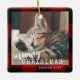 Xadrez de Buffalo Black e Red Check Merry Christmas Ornament com fotos e nomes de gatos de estimação com palavras bonitinhas e engraçadas de "natal meowy".