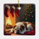 Ornamento De Cerâmica Bulldog by the Fireplace Christmas Painting