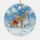 Pequenos coelhos bonitos se amontoam no inverno nevado para se manterem seguros e quentes