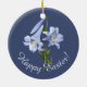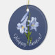 Três lírios Páscoas adoráveis em tons pálidos de violeta azul acentuados com caules verdes e folhas compõem esta design gráfica que parece tão fresca e bonito como uma manhã primavera. O lírio é um símbolo da ressurreição na igreja cristã.