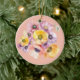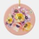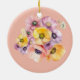 A explosão de bonito flores coloridas inspira-se em me mergulhar entre flores silvestres. Com uma coleção vibrante de um belo punhado de flores colocadas sobre um fundo cor-de-rosa macio, este ornamento redondo pendurado é perfeito para iluminar qualquer sala. É um design de captura de olhos que não só traz um pop de cor, como também adiciona uma sensação quente e convidativa à sua decoração.