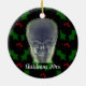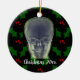 Uma radiografia do crânio sobrepõe-se às folhas ocas para fazer um adorno de férias divertido.