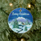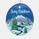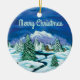 Personalize e clareie sua árvore de Natal com este Enfeites de natal único de "Um tipo"! Ele apresenta uma cabine de registro pacífica aninhada em uma terra maravilhosa de inverno... cercada por montanhas com capas de neve e árvores de pinheiros cobertas de neve! Pintura de arte original do artista Kerry Miller.