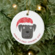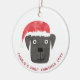 Cachorro preto bonito e adorável em um chapéu de Papai Noel de Natal vermelho. Altere o nome, a data e o texto para personalizar. Arte original de Nic Squirrell.